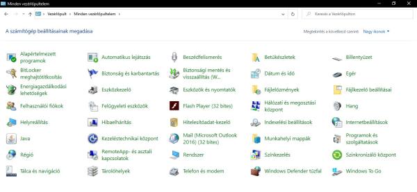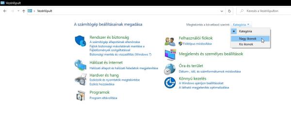 Vezérlőpult nézetének beállítása Windows 10-ben